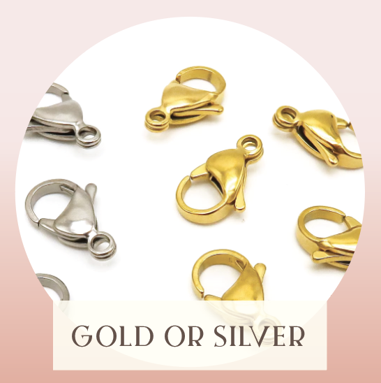 OUR ESSENTIAL LOBSTER CLAW CLASPS ARE AVAILABLE IN YOUR CHOICE OF METAL, GOLD-FILLED OR STAINLESS SILVER AND ARE STURDY AND EASE TO OPERATE ONE HANDED SO YOU CAN GET YOURSELF IN AND OUT OF YOUR JEWELRY WITH EASE